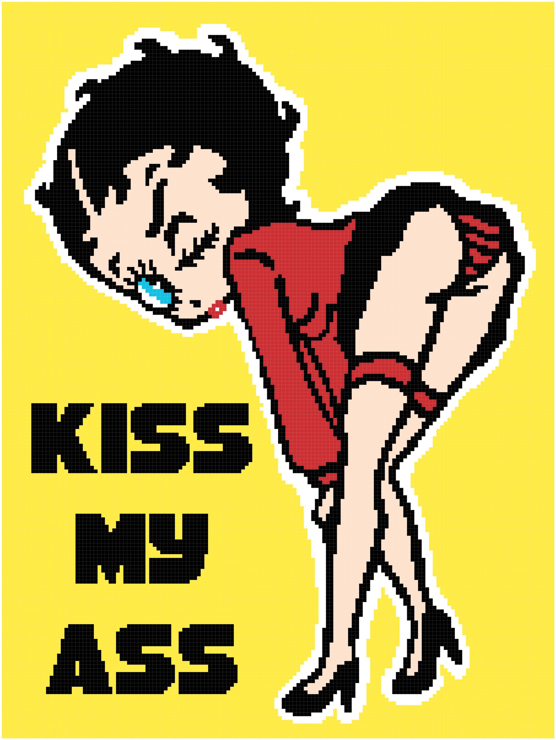 Betty Kiss My Ass  is 150 stitches wide and 200 rows long