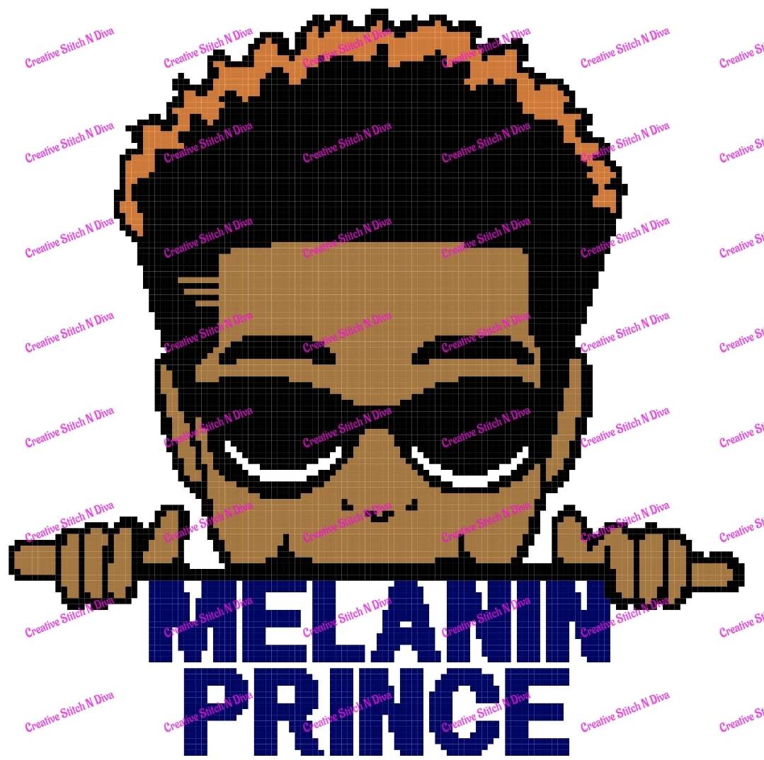 Melanin Prince is 130 stitches wide and 130 rows long