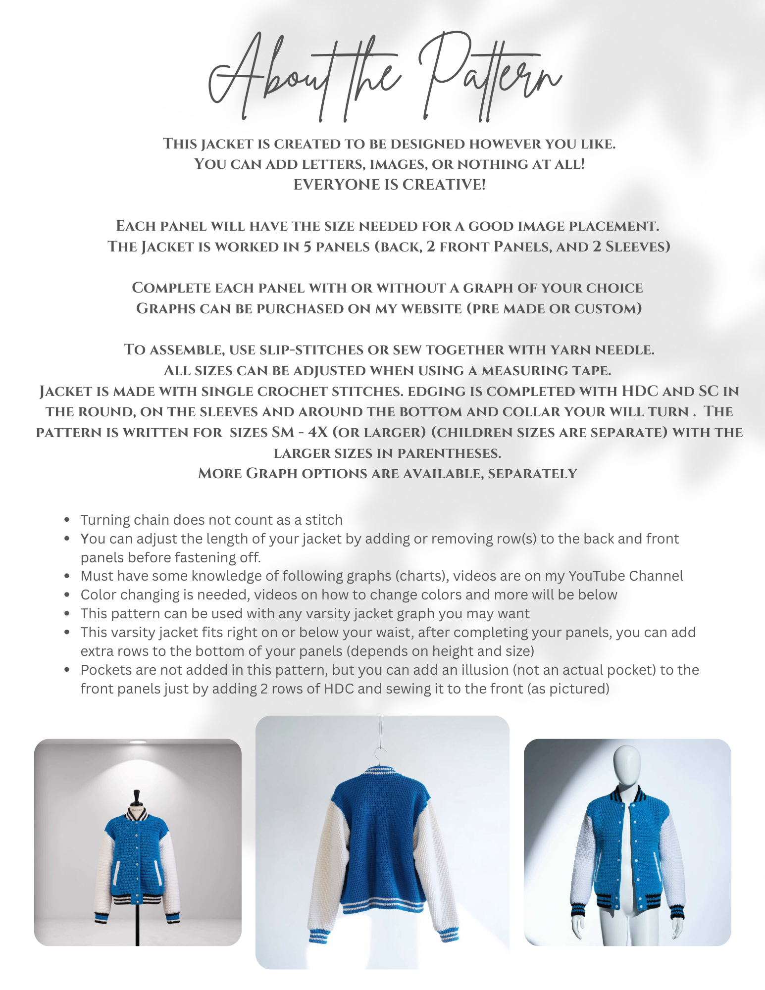 DIY Varsity Jacket can be used with any of my varsity jacket designed graphs. Follow this pattern along with any of the themes you choose.